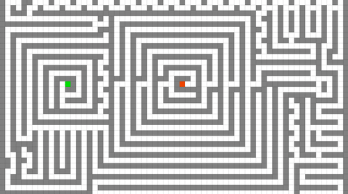 В качестве конкретного примера, пусть у нас есть булева матрица размера \(n \times n\), в которой помечено, свободна ли клетка с координатами \((x, y)\), и требуется найти кратчайший путь от \((x_s, y_t)\) до \((x_y, y_t)\) при условии, что за один шаг можно перемещаться в свободную соседнюю по вертикали или горизонтали клетку.
