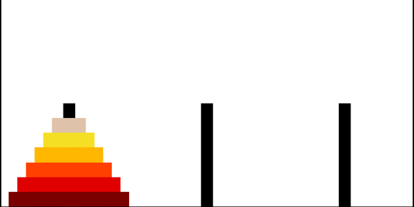 Ханойская башня — перестановочная головоломка в виде трёх стержней, на один из которых в виде пирамиды нанизаны восемь колец разного диаметра. Задача состоит в том, чтобы переместить пирамиду из колец на другой стержень за наименьшее число ходов. За один раз разрешается переносить только одно кольцо, причём нельзя класть большее кольцо на меньшее.
